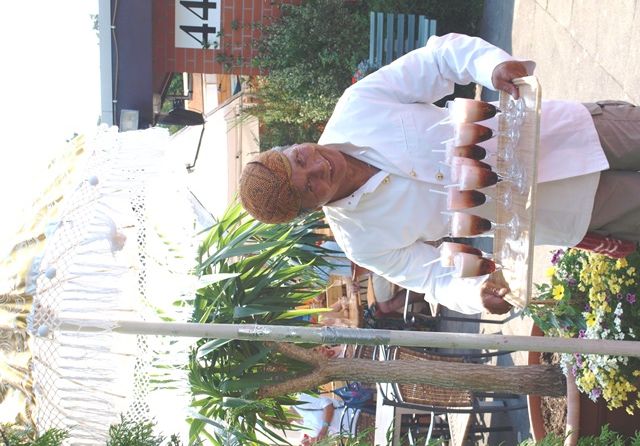 Doorgewandeld naar het terras kon men zich al snel in Indische sferen wanen, batikdoeken , tjitjaks, bloemen en veel plantengroen, een wajang schaduwspel en een Indisch muziek duo.