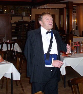 De dames en heren van de bediening werden bedankt voor de voortreffelijke verzorging van de gasten en Theo deed dat door nu eens niet iedereen op een rijte voor de gasten neer te zetten, nee, hij haalde 'stellvertretend' Annika voor het voetlicht.