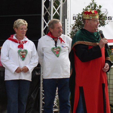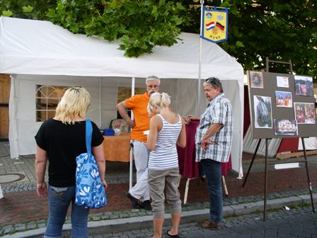 Onze vice-voorzitster Geke van Nes als medelid van het Ehrenwerte Matjes Geselschaft, assisteerde bij deze actie, daarbij de aandacht vestigend op de aanwezigheid van de Nederlandse Traditievereniging Seedorf.