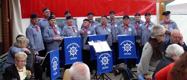 Tegen 11.00 uur stond het koor “de Windjammers” al klaar om voor ons (meer dan 70 leden) enkele optredens te verzorgen tijdens het eten.