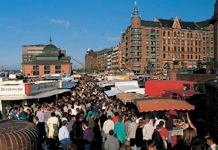 De niet minder bekende marktschreeuwers trekken iedere zondagochtend van 5 tot 9 uur massa's mensen naar de kade van de Elbe.