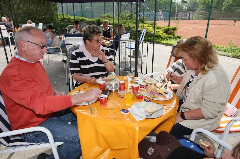Het was ook zeker de moeite waard want er was door de medewerkers een indrukwekkend buffet opgebouwd bestaande uit verschillende soorten brood en broodjes, boter, jam, diverse soorten gesneden vleeswaren en kaas, vis, gekookte eieren, roerbak ei met spekjes, worstjes, salades en fruit.