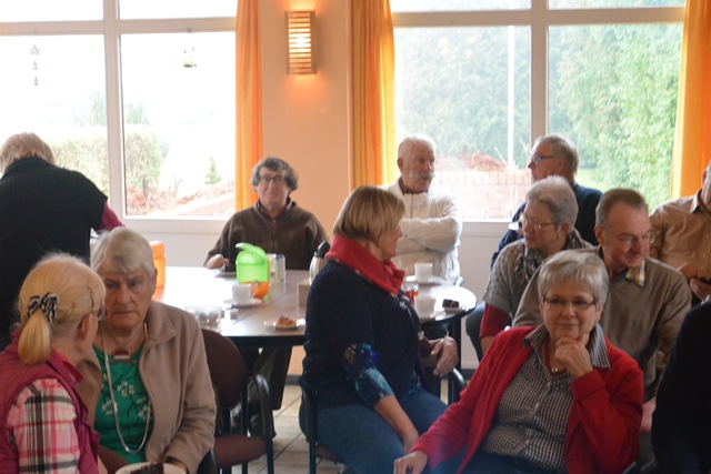 Onder het genot van koffie, thee en gebak werd aandachtig geluisterd naar de belevenissen.