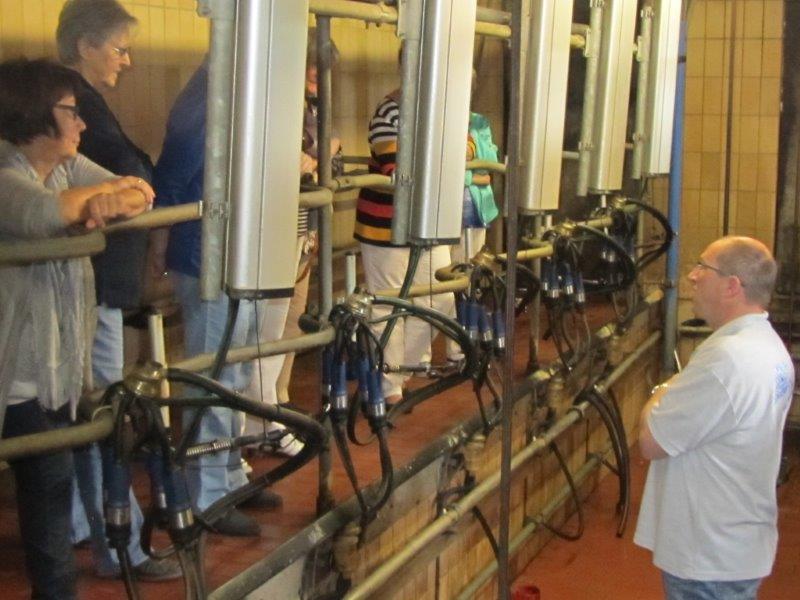 Na een vriendelijk onthaal, konden we onze jassen en meegebrachte etenswaar daar in het halletje laten staan en gingen we de ronde door de stallen maken. De familie heeft 130 st. melkkoeien.Grotendeels Holstein-Friesian (een Amerikaans zwartbont melkras) en sinds kort ook wat Belgisch witblauw. (zie foto’s). Daarbij hebben ze een eigen melkfabriek waar ze naast de gewone melk, ook melk en yoghurt drankjes produceren, zo ook kwark, karnemelk,...
