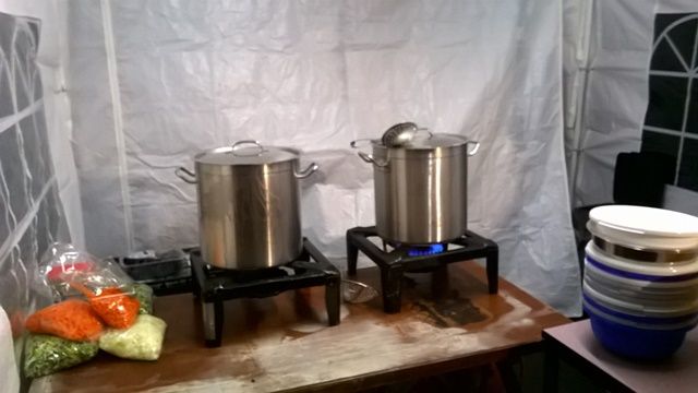 Onze "vaste" kok Eddy Berghuis had, geassisteerd door zijn zoon om 18.00 uur de mosselen klaar, Kim bracht de spareribs "a la Wilde 13", voor de alternatievelingen ('t zijn er steeds meer) en het (BOK)bier stond koud.....{BRRR}