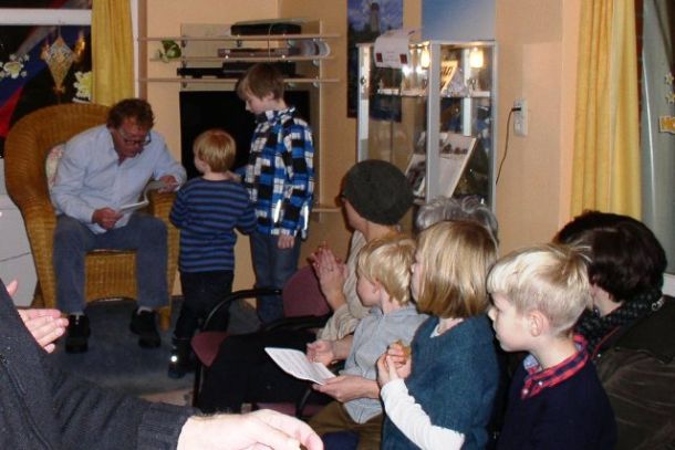 “Klein Seedorf” zat weer vol met (kleine) mensen Die, met al hun, o zo grote, wensen stilletjes genoten………., Van chocolademelk en pepernoten. Ook de “groten” werden aangetrokken Met een kop koffie en speculaasbrokken Zelfs live muziek was erbij Een dwarsfluit en trekharmonica lieten zich horen en ondersteunden daarmee de (kinder-)koren De Sint, was, zoals altijd, precies op tijd, Samen met de grote staf, mijter en habijt Cadeaus had hij voor allemaal En een stichtelijk woord voor iemand met kabaal…. Met gezang is hij na een uurtje weer vertrokken Liet dan de ouders met de brokken, van overgel…