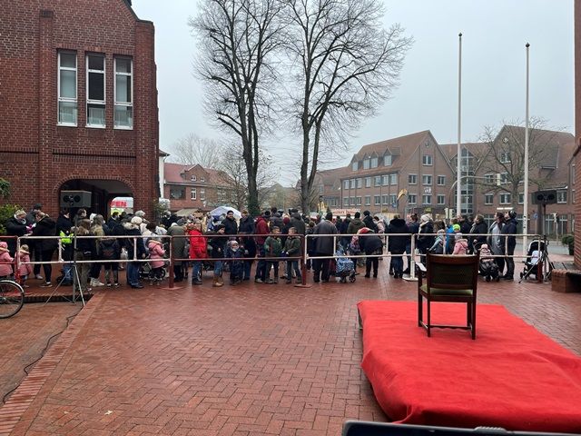 Bij het Rathaus staan de kinderen te wachten